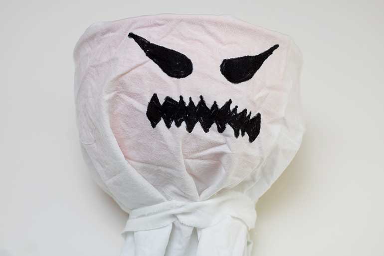 3. Zuletzt malt ihr ein gruseliges Gesicht auf.