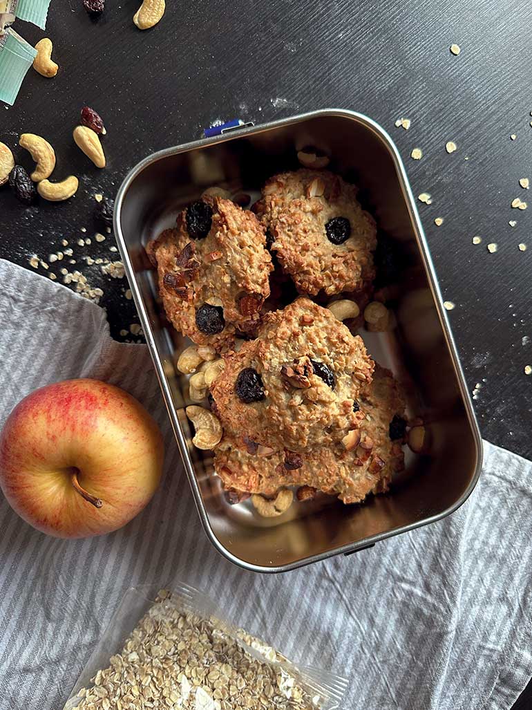 Zum Schluss lasst ihr die Kekse gut abkühlen und dann können sie auch schon in die Brotdose wandern. Fertig!
